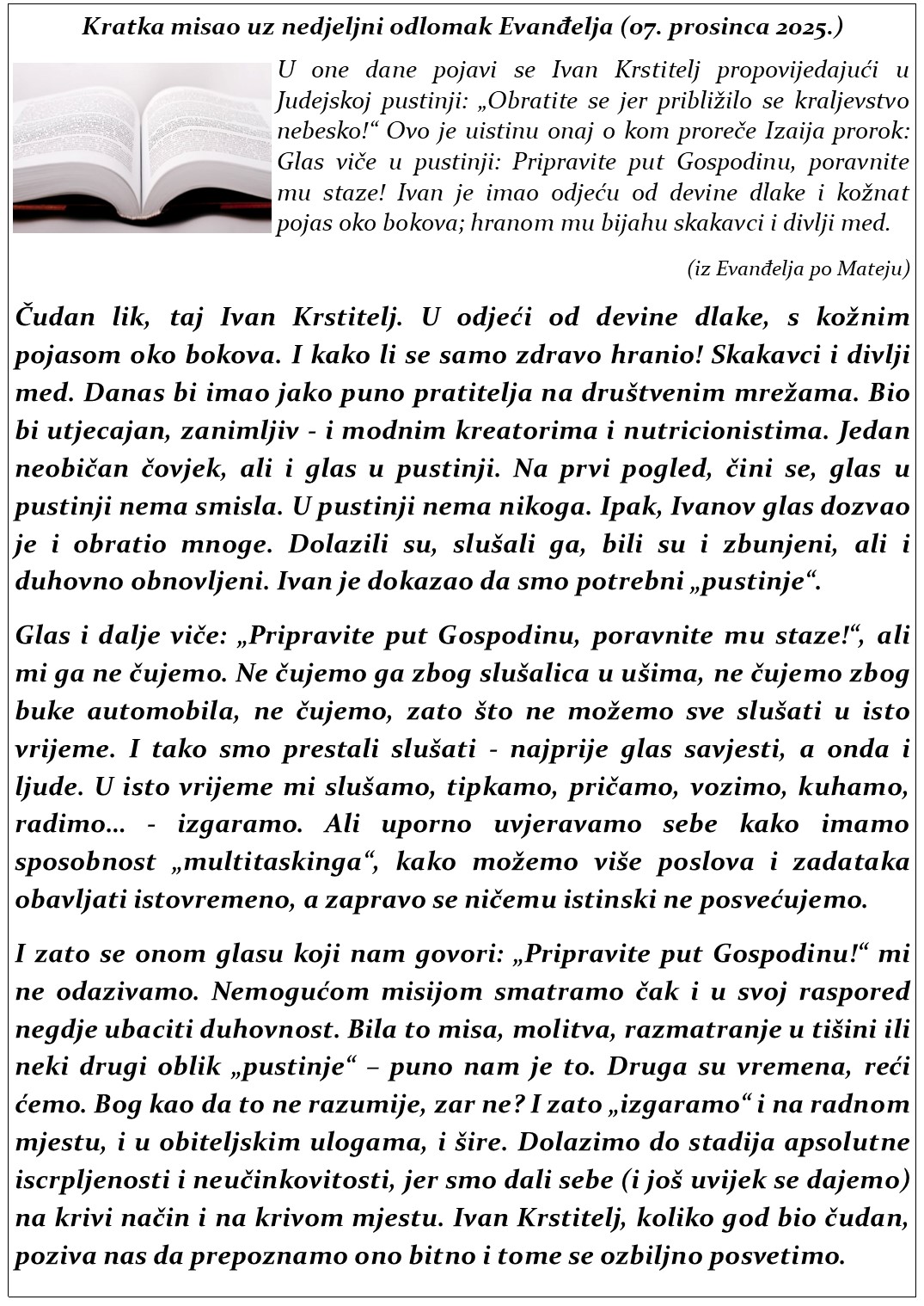 - Kratka misao uz nedjeljni odlomak Evanđelja (24. kolovoza 2025.)